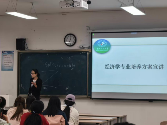 为帮助学生深入了解经济专业特色与发展前景,青海师范大学经济管理学院于2025年9月25日在东四教学楼202教室为25级经济学新生开展专业介绍讲座。讲座邀请经济学教研室系主任尹秀娟作为主讲人。