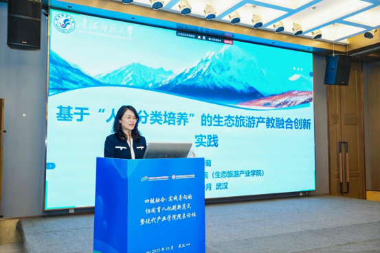 2025年10月18日,中国现代产业学院协同创新平台主办的“四链融合:实践导向的协同育人机制新范式暨现代产业学院院长论坛”在武汉举办,青海师范大学生态旅游产业学院院长薛华菊携酒店管理教研室主任郭瑞及教师代表张媛钰、李蹊参会。论坛汇聚全国100余所高校近300名专家学者与业界代表,围绕“校企协同育人机制”展开深度研讨。