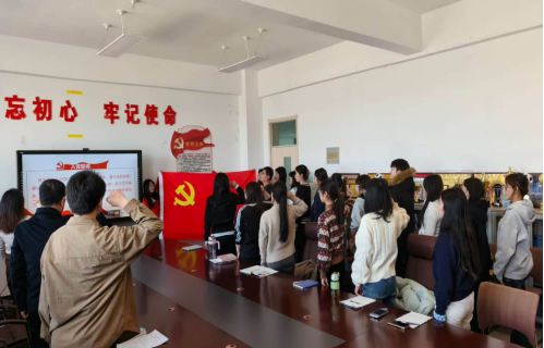 3月19日,经济管理学院党委举行预备党员入党宣誓大会。学院党委书记张剑勇、副书记王国靖、学生党支部书记、党员代表及全体新发展预备党员参加仪式。